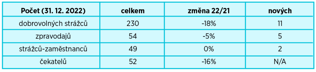 AOPK ČR nevede centrální evidenci členů stráže přírody. Počty jsou tak aktualizované jednou ročně, a to k 31. 12. předešlého roku. Výsledky se veřejnost dozvídá v ročence AOPK ČR. Počty na konci loňského roku udává následující tabulka. Zobrazené počty jsou souhrnné a v praxi tak nastává, že stejná osoba ustanovená stráží přírody ve dvou různých CHKO je započítána dvakrát. Dosud však taková situace nenastává častěji než v jednotkách případů.